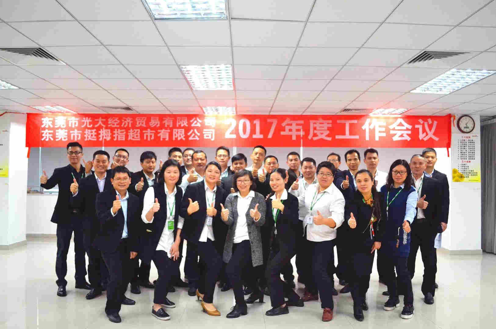 東莞市光大經(jīng)濟(jì)貿(mào)易有限公司(挺拇指生活超市)2017年度工作會(huì)議于20161219日在光大總部召開,公司常務(wù)副總蓋莉君女士、各職能部門負(fù)責(zé)人及各門店店長出席了會(huì)議。