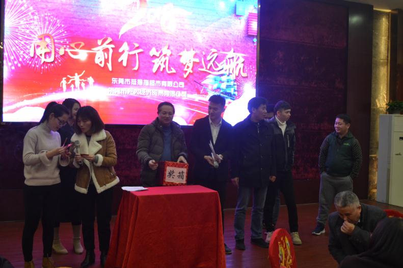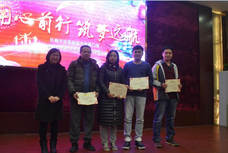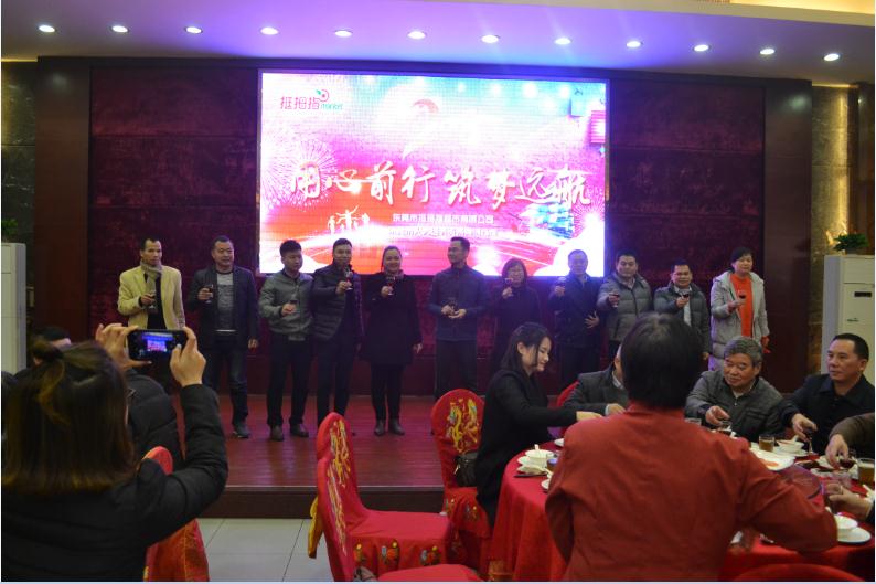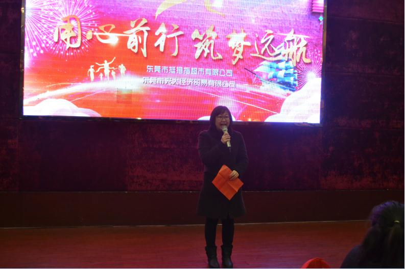 2018年1月22日至2月2日東莞市光大經(jīng)濟(jì)貿(mào)易有限公司旗下的挺拇指超市在東莞市各鎮(zhèn)區(qū)挺拇指分店隆重舉辦挺拇指2018“用心前行 筑夢(mèng)遠(yuǎn)航”團(tuán)年晚宴,本次晚宴由挺拇指分店自行籌備和舉辦,形式豐富多樣,內(nèi)容豐富多彩,有幸運(yùn)大抽獎(jiǎng),還有精心準(zhǔn)備的互動(dòng)環(huán)節(jié)。晚會(huì)由公司派出以常務(wù)副總經(jīng)理蓋莉君女士為領(lǐng)導(dǎo)小組的隊(duì)伍分赴各分店與員工齊聚一堂,共同迎接2018年新的一年到來(lái)。