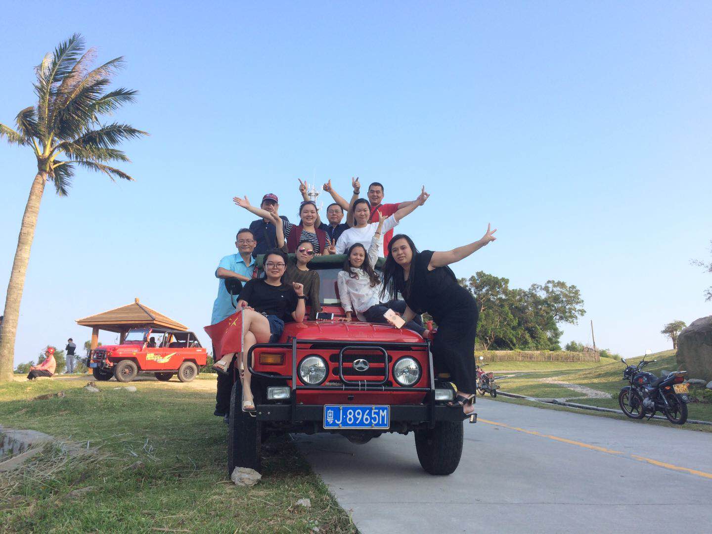 金秋十月,秋高氣爽的季節(jié)。2017年10月21~22日光大公司組織員工到江門臺(tái)山下川島兩天游。第一天早上7:30,各位家人準(zhǔn)時(shí)在寫字樓集合出發(fā),歷經(jīng)四小時(shí)到達(dá)了下川島王府洲旅游區(qū)。旅游區(qū)位于下川島南部的南澳灣,海灣呈月牙形,三面奇峰環(huán)繞,環(huán)境幽靜。海濱沙灘長(zhǎng)1600米,海水清澈、灘平浪靜、白沙細(xì)軟,為天然優(yōu)質(zhì)的海濱浴場(chǎng)。大家紛紛卸下身上厚重的行李,攜家眷好友在沙灘上追波逐浪,玩得不亦樂(lè)乎;亦或者陪伴小孩,堆沙堡,覓尋魚蟹;也有家人選擇刺激的探險(xiǎn)之旅,駕上越野車馳奔于林間小道,路上一望無(wú)際的美景盡收眼底。到達(dá)山頂上,大自然那鬼斧神工鐫刻出一幅幅美不勝收的畫面,換來(lái)了家人們情不自禁的感嘆,面對(duì)此情此景,家人們紛紛在車上擺好pose,拍下了合照紀(jì)念,并留下豪言“戰(zhàn)狼3拍攝現(xiàn)場(chǎng)”。